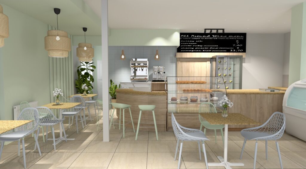 Dziś nowa odsłona CUKIERNI NA ROGU w Kaliszu. Odświeżona w nowych barwach. Kolor szałwiowy w połączeniu z bladym błękitem i szarością to hit ostatniego sezonu. Pasuje do każdego wnętrza, działa uspakajająco i wyciszająco. Nawiązuje do świata natury, co wpisuje się w aktualne trendy wnętrzarskie. Co sądzicie o takim zestawieniu barw w cukierni? Ja jestem zachwycona realizacją tego projektu. Moim zdaniem takie połączenie idealnie pasuje do takich słodkich pomieszczeń jak cukiernia, kawiarnia czy lodziarnia. Jeśli chcecie zobaczyć efekty mojej pracy wybierzecie się do tego cudownego miejsca, gdzie w otoczeniu roślin spokojnie wypijecie najlepszą kawę w mieście i skosztujecie przepysznego ciasta.
